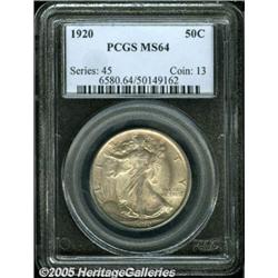 <B>1920 50C MS64 PCGS.</B></I> Lustrous surfaces are visited by light golden-gray patina. A couple of minor milling marks are noted in the lower right obverse field