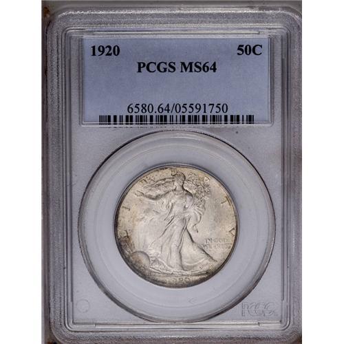1920 50C MS64 PCGS. Well struck, lustrous, and nicely 1920[50C] MS64 PCGS.