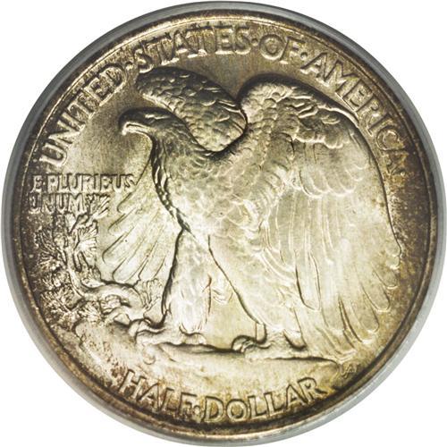 1920 50C MS65 PCGS. Autumn-brown toning adorns the mar