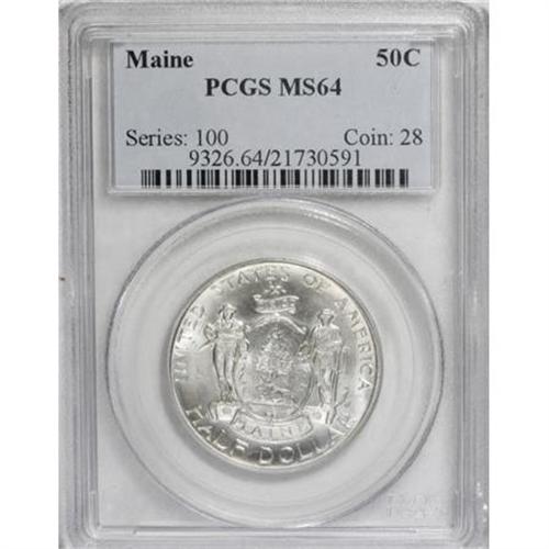 <B>1920 50C Maine MS64 PCGS.</B></I> PCGS Population (1106/1160). NGC Census: (1004/1031). Mintage: 50,028. Numismedia Wsl. Price for NGC/PCGS coin in MS64: $258. (#9326)<BR><BR><b>Shipping:</b> Coins & Currency (<a target="_blank" href="http://www.heritageauctions.com/common/shipping.php">view shipping information</a>\)