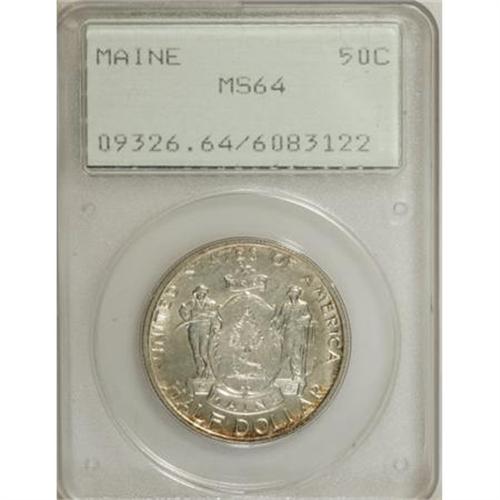 <B>1920 50C Maine MS64 PCGS.</B></I> PCGS Population (1108/1163). NGC Census: (1006/1033). Mintage: 50,028. Numismedia Wsl. Price for NGC/PCGS coin in MS64: $258. (#9326)<BR><BR><b>Shipping:</b> Coins & Currency (<a target="_blank" href="http://www.heritageauctions.com/common/shipping.php">view shipping information</a>)