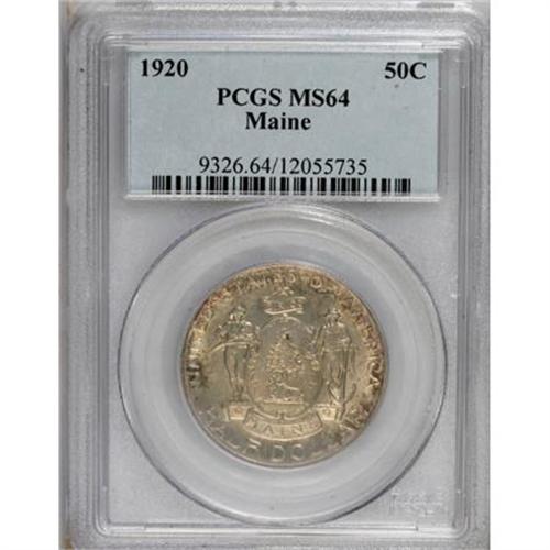 <B>1920 50C Maine MS64 PCGS.</B></I> PCGS Population (1128/1180). NGC Census: (1010/1036). Mintage: 50,028. Numismedia Wsl. Price for NGC/PCGS coin in MS64: $258. (#9326)<BR><BR><b>Shipping:</b> Coins & Currency (<a target="_blank" href="http://www.heritageauctions.com/common/shipping.php">view shipping information</a>)