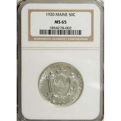 <B>1920 50C Maine MS65 NGC.</B></I> NGC Census: (779/252). PCGS Population (814/346). Mintage: 50,028. Numismedia Wsl. Price for NGC/PCGS coin in MS65: $452. (#9326)<BR><BR><b>Shipping:</b> Coins & Currency (<a target="_blank" href="http://www.heritageauctions.com/common/shipping.php">view shipping information</a>\)