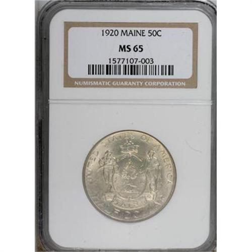 <B>1920 50C Maine MS65 NGC.</B></I> NGC Census: (781/255). PCGS Population (822/347). Mintage: 50,028. Numismedia Wsl. Price for NGC/PCGS coin in MS65: $452. (#9326)<BR><BR><b>Shipping:</b> Coins & Currency (<a target="_blank" href="http://www.heritageauctions.com/common/shipping.php">view shipping information</a>)