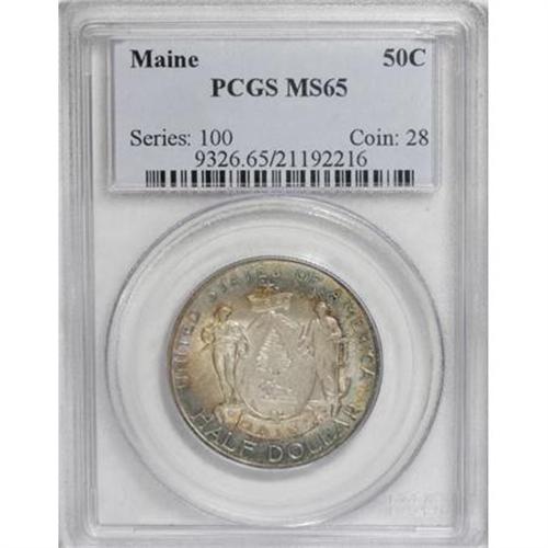 <B>1920 50C Maine MS65 PCGS.</B></I> PCGS Population (814/346). NGC Census: (774/252). Mintage: 50,028. Numismedia Wsl. Price for NGC/PCGS coin in MS65: $452. (#9326)<BR><BR><b>Shipping:</b> Coins & Currency (<a target="_blank" href="http://www.heritageauctions.com/common/shipping.php">view shipping information</a>\)