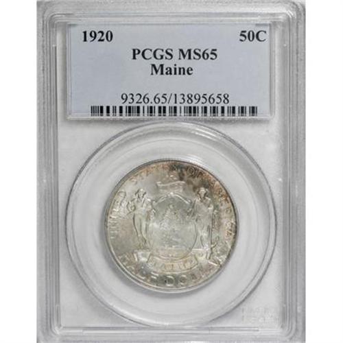 <B>1920 50C Maine MS65 PCGS.</B></I> PCGS Population (814/346). NGC Census: (779/252). Mintage: 50,028. Numismedia Wsl. Price for NGC/PCGS coin in MS65: $452. (#9326)<BR><I>From The Frank DuVall Collection of U.S. Commemoratives.</B></I><BR><BR><b>Shipping:</b> Coins & Currency (<a target="_blank" href="http://www.heritageauctions.com/common/shipping.php">view shipping information</a>\)