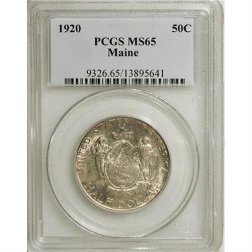 <B>1920 50C Maine MS65 PCGS.</B></I> PCGS Population (814/346). NGC Census: (779/252). Mintage: 50,028. Numismedia Wsl. Price for NGC/PCGS coin in MS65: $452. (#9326)<BR><I>From The Frank DuVall Collection of U.S. Commemoratives.</B></I><BR><BR><b>Shipping:</b> Coins & Currency (<a target="_blank" href="http://www.heritageauctions.com/common/shipping.php">view shipping information</a>\)
