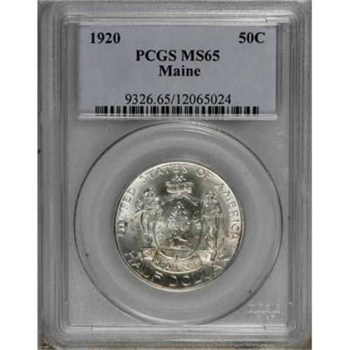 <B>1920 50C Maine MS65 PCGS.</B></I> . PCGS Population (841/355). NGC Census: (786/257). Mintage: 50,028. Numismedia Wsl. Price for NGC/PCGS coin in MS65: $400. (#9326)<BR><BR><b>Shipping:</b> Coins & Currency (<a target="_blank" href="http://www.heritageauctions.com/common/shipping.php">view shipping information</a>)