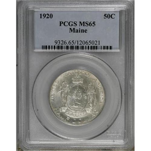<B>1920 50C Maine MS65 PCGS.</B></I> . PCGS Population (841/355). NGC Census: (786/257). Mintage: 50,028. Numismedia Wsl. Price for NGC/PCGS coin in MS65: $400. (#9326)<BR><BR><b>Shipping:</b> Coins & Currency (<a target="_blank" href="http://www.heritageauctions.com/common/shipping.php">view shipping information</a>)