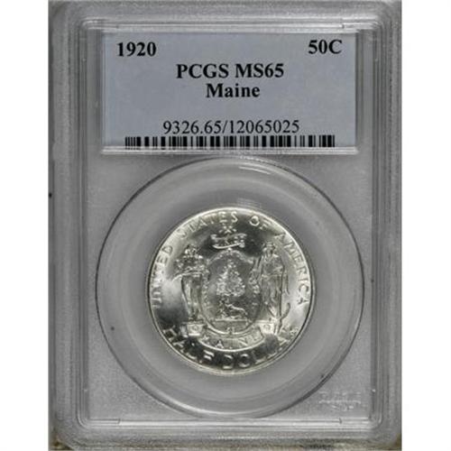 <B>1920 50C Maine MS65 PCGS.</B></I> PCGS Population (841/355). NGC Census: (786/257). Mintage: 50,028. Numismedia Wsl. Price for NGC/PCGS coin in MS65: $400. (#9326)<BR><BR><b>Shipping:</b> Coins & Currency (<a target="_blank" href="http://www.heritageauctions.com/common/shipping.php">view shipping information</a>)