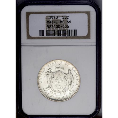 1920 50C Maine MS66 NGC. Brilliant silver-white, with 1920[50C] Maine MS66 NGC.