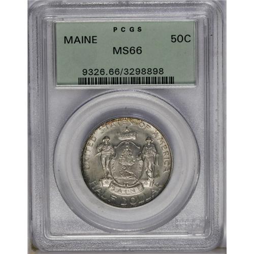 <B>1920<50C> Maine MS66 PCGS.</B></I> Peripheral chestnut toning embraces cream-gray interiors. This lustrous Premium Gem is beautifully preserved, and is housed in a green label PCGS holder. The centers lack an absolute strike.