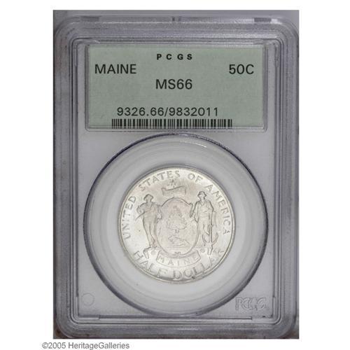 1920 50C Maine MS66 PCGS. Silvery surfaces display rad 1920[50C] Maine MS66 PCGS.