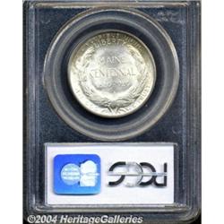 <table><tr><td><table><tr><td>1920 50C Maine MS66 PCGS. Softly struck along the tops of E PLU, and along the bottoms of HAL, but well struck in the other areas, with exceptional satiny luster, lovely variegated russet and green toning, near the peripheries, and a few shallow blemishes in the upper reverse field. Population: 289 in 66, 15 finer (3/04). <BR><BR><B>Important notice:</B> Heritage usually auctions material at the rate of 200-250 lots per hour. On some occasions eBay Live bid software or the Internet may not be able to keep up with the pace of the auction. We recommend placing a realistic absentee bid now as insurance to avoid disappointment. Occasionally the auctioneer may eliminate or reject an eBay Live bid, and the auctioneer may also reopen a lot after the close of the eBay live bidding (usually because we missed an audience bid), and may reject your bid even if it shows you as the winning bidder. By bidding via eBay Live, you agree that Heritage may award the lot to another bidder at its sole discretion under the circumstances described above or any other reasonable circumstances. Since eBay bids are not shown to us until we open the lot on the floor, we treat those bids just like floor bids. In most cases the floor responds before the eBay bid is presented to us, due to Internet lag time, so for consistency we have made it a policy that floor bids are always considered first over tie eBay live bids. Also please note that all Heritage lots purchased through eBay Live carry a 20% Buyer's Premium. Please make sure you read the Terms and Conditions before you bid. <BR><BR><B>IMPORTANT ANNOUNCEMENT ABOUT RESERVES:</B> Heritage now divulges all reserves on its web site 7 days before every auction. If you want to know whether the reserve on this lot has been met, and if not, what the reserve amount is, please visit this lot page on the HeritageCoin.com web site, or email: bid@HeritageGalleries.com </span></font></td></tr></table></td></tr></table>
