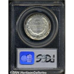 <B>1920<50C> Maine MS66 PCGS.</B></I> Lustrous for the issue with few noticeable marks atop the surfaces. Both obverse and reverse margins show dark rainbow patination. <BR><BR><B>Important notice:</B> Heritage usually auctions material at the rate of 200-250 lots per hour. On some occasions eBay Live bid software or the Internet may not be able to keep up with the pace of the auction. We recommend placing a realistic absentee bid now as insurance to avoid disappointment. Occasionally the auctioneer may eliminate or reject an eBay Live bid, and the auctioneer may also reopen a lot after the close of the eBay live bidding (usually because we missed an audience bid), and may reject your bid even if it shows you as the winning bidder. By bidding via eBay Live, you agree that Heritage may award the lot to another bidder at its sole discretion under the circumstances described above or any other reasonable circumstances. Since eBay bids are not shown to us until we open the lot on the floor, we treat those bids just like floor bids. In most cases the floor responds before the eBay bid is presented to us, due to Internet lag time, so for consistency we have made it a policy that floor bids are always considered first over tie eBay live bids. Also please note that all Heritage lots purchased through eBay Live carry a 20% Buyer's Premium. Please make sure you read the Terms and Conditions before you bid. </span></font></tr></table></td></tr></table>
