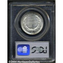 <B>1920<50C> Maine MS67 PCGS.</B></I> Essentially perfect surfaces, this is a Superb Maine commem that is near-brilliant, with the thick underlying mint frost common to this issue. Fully struck with light die clash marks (as struck) on each side, and wispy die striations (also as struck) in the fields. A truly beautiful, conditionally scarce coin. Only one example has been graded finer, by PCGS (3/04).<BR><I>Ex: FUN Signature Sale (Heritage, 1/02), lot 8788, which realized $4,370.</B></I><BR><I>From the JFS Collection, the #1 All-Time PCGS Registry Set.</B></I> <BR><BR><B>Important notice:</B> Heritage usually auctions material at the rate of 200-250 lots per hour. On some occasions eBay Live bid software or the Internet may not be able to keep up with the pace of the auction. We recommend placing a realistic absentee bid now as insurance to avoid disappointment. Occasionally the auctioneer may eliminate or reject an eBay Live bid, and the auctioneer may also reopen a lot after the close of the eBay live bidding (usually because we missed an audience bid), and may reject your bid even if it shows you as the winning bidder. By bidding via eBay Live, you agree that Heritage may award the lot to another bidder at its sole discretion under the circumstances described above or any other reasonable circumstances. Since eBay bids are not shown to us until we open the lot on the floor, we treat those bids just like floor bids. In most cases the floor responds before the eBay bid is presented to us, due to Internet lag time, so for consistency we have made it a policy that floor bids are always considered first over tie eBay live bids. Also please note that all Heritage lots purchased through eBay Live carry a 20% Buyer's Premium. Please make sure you read the Terms and Conditions before you bid. </span></font></tr></table></td></tr></table>