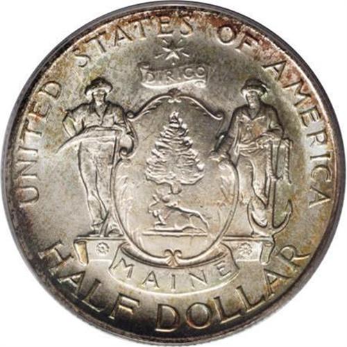 <B>1920 50C Maine MS67 PCGS.</B></I> Lime-green and orange-gold grace this thoroughly lustrous Superb Gem. The high relief wreath is fully struck, and the centers have only a trace of incompleteness. Immaculate except for minor contact near the back of the moose. Population: 16 in 67, 0 finer (8/07).<BR><I>From The Sterling Collection.</B></I><BR><BR><b>Shipping:</b> Coins & Currency (<a target="_blank" href="http://www.heritageauctions.com/common/shipping.php">view shipping information</a>)