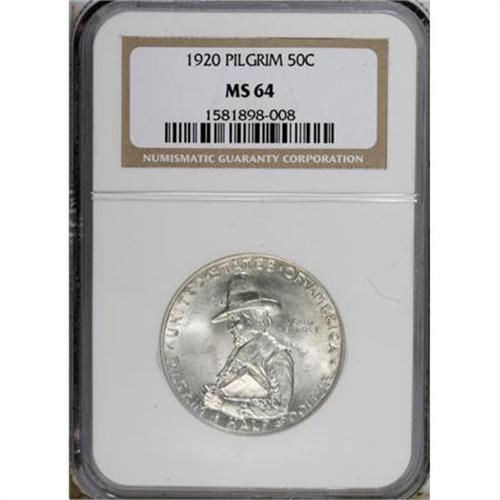 <B>1920 50C Pilgrim MS64 NGC.</B></I> NGC Census: (1826/1085). PCGS Population (1617/1123). Mintage: 152,112. Numismedia Wsl. Price for NGC/PCGS coin in MS64: $128. (#9359)<BR><BR><b>Shipping:</b> Coins & Currency (<a target="_blank" href="http://www.heritageauctions.com/common/shipping.php">view shipping information</a>\)
