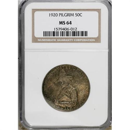 <B>1920 50C Pilgrim MS64 NGC.</B></I> . NGC Census: (1867/1107). PCGS Population (1678/1178). Mintage: 152,112. Numismedia Wsl. Price for NGC/PCGS coin in MS64: $125. (#9359)<BR><BR><b>Shipping:</b> Coins & Currency (<a target="_blank" href="http://www.heritageauctions.com/common/shipping.php">view shipping information</a>)