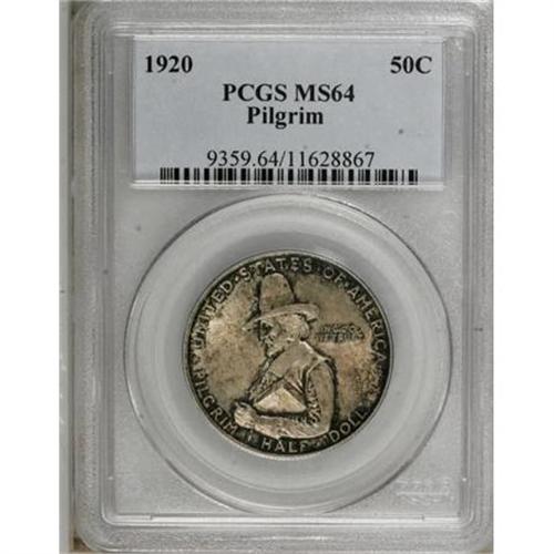 <B>1920 50C Pilgrim MS64 PCGS.</B></I> PCGS Population (1668/1176). NGC Census: (1862/1098). Mintage: 152,112. Numismedia Wsl. Price for NGC/PCGS coin in MS64: $128. (#9359)<BR><BR><b>Shipping:</b> Coins & Currency (<a target="_blank" href="http://www.heritageauctions.com/common/shipping.php">view shipping information</a>)