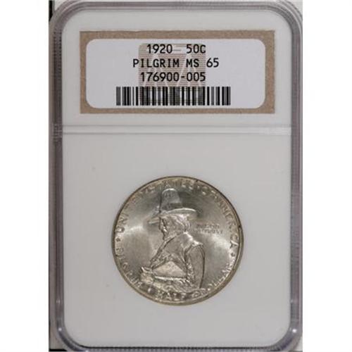 <B>1920 50C Pilgrim MS65 NGC.</B></I> NGC Census: (940/165). PCGS Population (849/327). Mintage: 152,112. Numismedia Wsl. Price for NGC/PCGS coin in MS65: $350. (#9359)<BR><BR><b>Shipping:</b> Coins & Currency (<a target="_blank" href="http://www.heritageauctions.com/common/shipping.php">view shipping information</a>)
