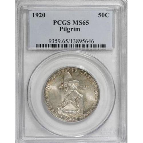 <B>1920 50C Pilgrim MS65 PCGS.</B></I> PCGS Population (816/307). NGC Census: (926/159). Mintage: 152,112. Numismedia Wsl. Price for NGC/PCGS coin in MS65: $380. (#9359)<BR><I>From The Frank DuVall Collection of U.S. Commemoratives.</B></I><BR><BR><b>Shipping:</b> Coins & Currency (<a target="_blank" href="http://www.heritageauctions.com/common/shipping.php">view shipping information</a>\)