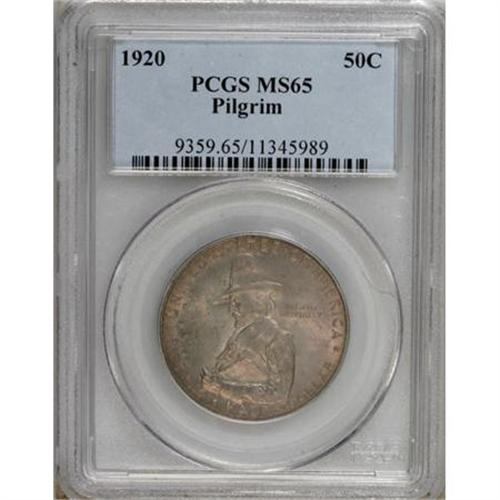 <B>1920 50C Pilgrim MS65 PCGS.</B></I> PCGS Population (830/321). NGC Census: (926/162). Mintage: 152,112. Numismedia Wsl. Price for NGC/PCGS coin in MS65: $380. (#9359)<BR><BR><b>Shipping:</b> Coins & Currency (<a target="_blank" href="http://www.heritageauctions.com/common/shipping.php">view shipping information</a>)