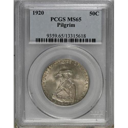 <B>1920 50C Pilgrim MS65 PCGS.</B></I> PCGS Population (859/328). NGC Census: (945/166). Mintage: 152,112. Numismedia Wsl. Price for NGC/PCGS coin in MS65: $340. (#9359)<BR><BR><b>Shipping:</b> Coins & Currency (<a target="_blank" href="http://www.heritageauctions.com/common/shipping.php">view shipping information</a>)