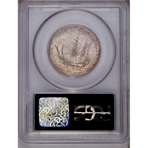 <B>1920 50C Pilgrim MS66 PCGS.</B></I> A beautiful chestnut-gold premium Gem, lustrous and nearly unmarked. The incuse D beneath the elbow is not a Denver mintmark, but the initial of the designer, Cyrus E. Dallin. Certified in a green label PCGS holder.