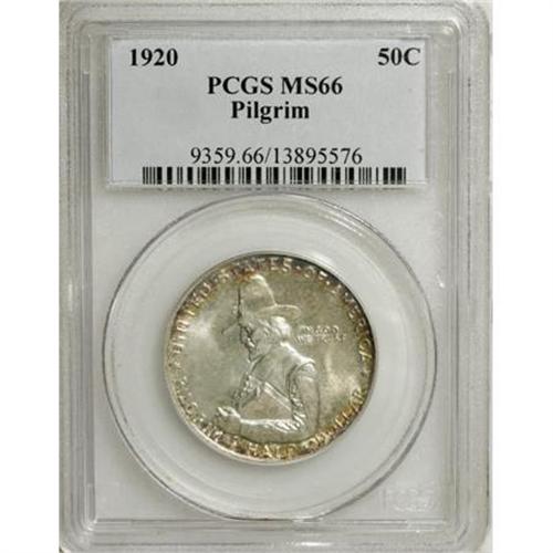 <B>1920 50C Pilgrim MS66 PCGS.</B></I> PCGS Population (276/31). NGC Census: (146/13). Mintage: 152,112. Numismedia Wsl. Price for NGC/PCGS coin in MS66: $850. (#9359)<BR><I>From The Frank DuVall Collection of U.S. Commemoratives.</B></I><BR><BR><b>Shipping:</b> Coins & Currency (<a target="_blank" href="http://www.heritageauctions.com/common/shipping.php">view shipping information</a>\)