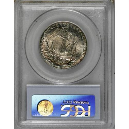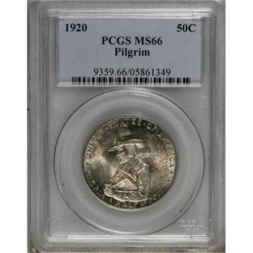 <B>1920 50C Pilgrim MS66 PCGS.</B></I> Boldly impressed with vibrant luster and splashes of golden-tan and blue patina. Carefully preserved with undeniable eye appeal, a marvelous Premium Gem. PCGS has graded 31 finer examples (2/08).<BR><BR><b>Shipping:</b> Coins & Currency (<a target="_blank" href="http://www.heritageauctions.com/common/shipping.php">view shipping information</a>)