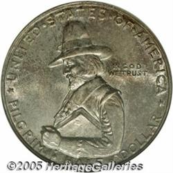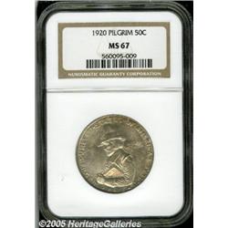 <B>1920 50C Pilgrim MS67 NGC.</B></I> Hints of purple-lilac toning are seen over the obverse, the reverse is essentially brilliant. A Superb example with no mentionable marks on either side. Population: 11 in 67, none finer at either service (2/05).