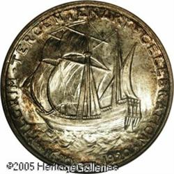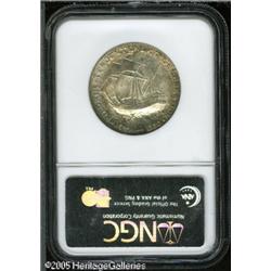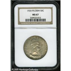 <B>1920 50C Pilgrim MS67 NGC.</B></I> Outstanding luster characteristics are kept in check by a thin veil of gray and golden patina on the obverse. Speckled russet peripheral highlights on the reverse are no match for this Superb Gem's radiance. Population: 10 in 67, 0 finer (1/05). Lot:8564