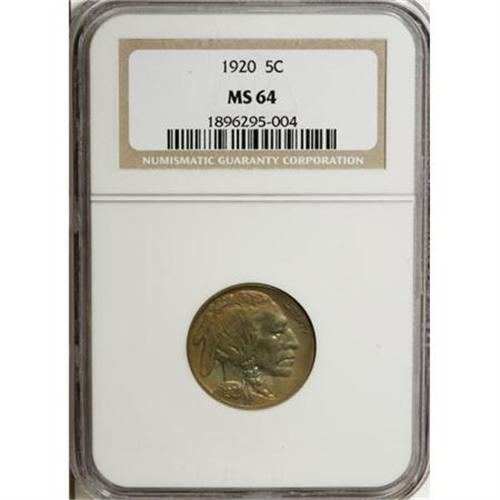 <B>1920 5C MS64 NGC.</B></I> Lavishly toned in rose-red, sea-green, and orange. A nicely struck near-Gem with shimmering luster and exceptional eye appeal for the grade.<BR><BR><B>Coin Engraver:</B> James E. Fraser<BR><BR><b>Shipping:</b> Coins & Currency (<a target="_blank" href="http://www.heritageauctions.com/common/shipping.php">view shipping information</a>)