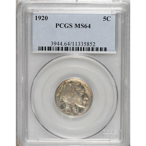<B>1920 5C MS64 PCGS.</B></I> PCGS Population (423/337). NGC Census: (289/113). Mintage: 63,093,000. Numismedia Wsl. Price: $196. (#3944)<BR><BR><b>Shipping:</b> Coins & Currency (<a target="_blank" href="http://www.heritageauctions.com/common/shipping.php">view shipping information</a>)