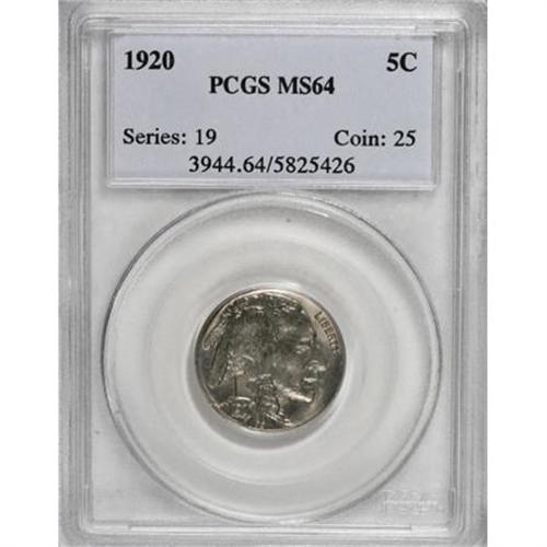 <B>1920 5C MS64 PCGS.</B></I> PCGS Population (418/327). NGC Census: (294/119). Mintage: 63,093,000. Numismedia Wsl. Price for NGC/PCGS coin in MS64: $196. (#3944)<BR><BR><B>Coin Engraver:</B> James E. Fraser<BR><BR><b>Shipping:</b> Coins & Currency (<a target="_blank" href="http://www.heritageauctions.com/common/shipping.php">view shipping information</a>)
