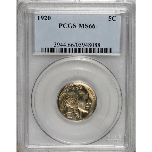 <B>1920 5C MS66 PCGS.</B></I> Honey-gold and ice-blue endow this lustrous and lovely Premium Gem. Well struck aside from the unavoidable slight incompleteness within the hair above the braid.<BR><BR><b>Shipping:</b> Coins & Currency (<a target="_blank" href="http://www.heritageauctions.com/common/shipping.php">view shipping information</a>)