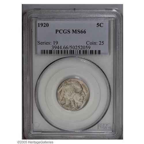 <B>1920<5C> MS66 PCGS.</B></I> Nearly untoned with the faintest traces of pastel coloration that has settled around some of the device detail. An uncommonly seen grade with only handful graded finer. Population: 89 in 66, 8 finer (10/05).