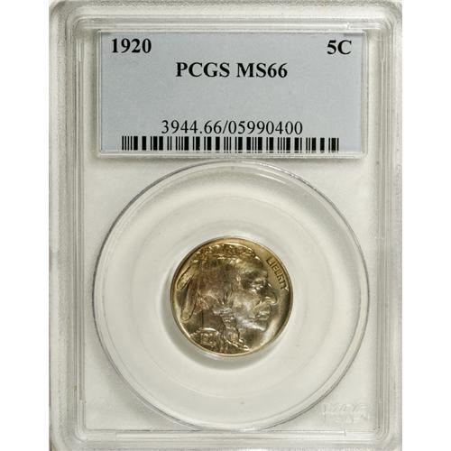 <B>1920 5C MS66 PCGS.</B></I> Swirling gold, violet-pink, and ice-blue patina adds color to the highly lustrous surfaces of this solidly struck Premium Gem. PCGS has certified only eight coins finer (12/06).<BR><BR><b>Shipping:</b> Coin/Currency (<a target="_blank" href="http://www.heritageauctions.com/common/shipping.php">view shipping information</a>)