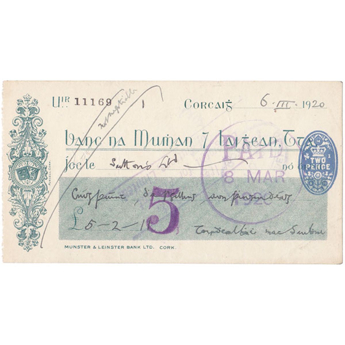 Written by the famous Cork Irish Volunteers leader and later hunger strike martyr to Sutton's Ltd two weeks before the death of Tomás Mac Curtain. Also with large press photograph of MacSwiney wearing a fáinne. (2 items)