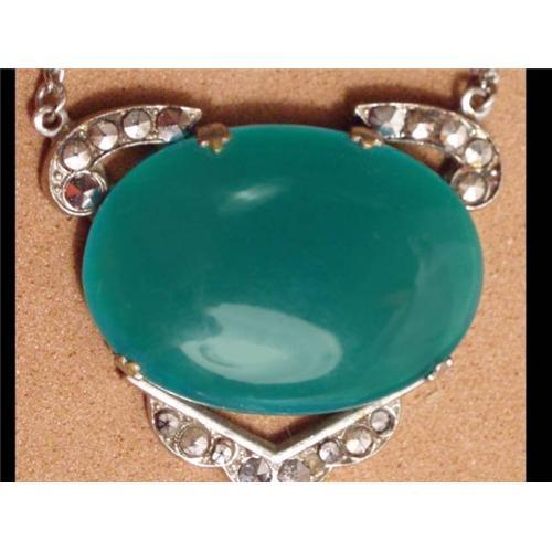 <tr><td>Title:1920' ART DECO Chrysoprase Marcasite NECKLACE</td></tr>