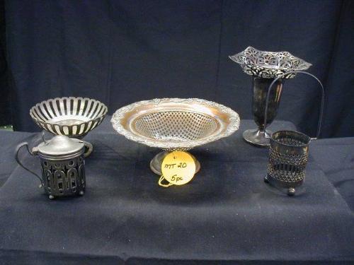1920 ASST. RETICULATED SILVER PLATE BASKETS, 5 PC