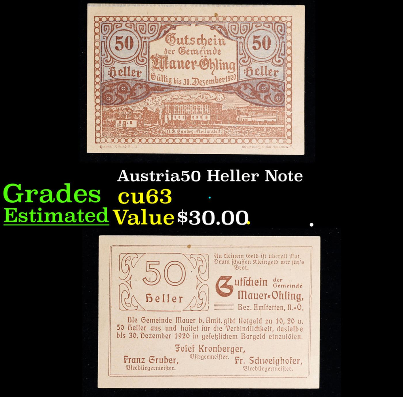 1920 Austria 50 Phennig Note Grades Select CU.