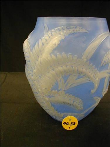 1920 CONSOLIDATED 7in VASE FEATURING FROSTED FERN PATTERN BLUE BACKGROUND