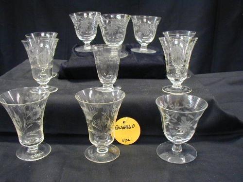 1920 CUT CRYSTAL FTD. TUMBLERS INCLUDES (4) 3 3/8in DAISY FLORAL (2 W/ EDGE CHIP), (6) 3 3/4in FLORAL (1) 3 1/4in RND FLORAL, 11 PC