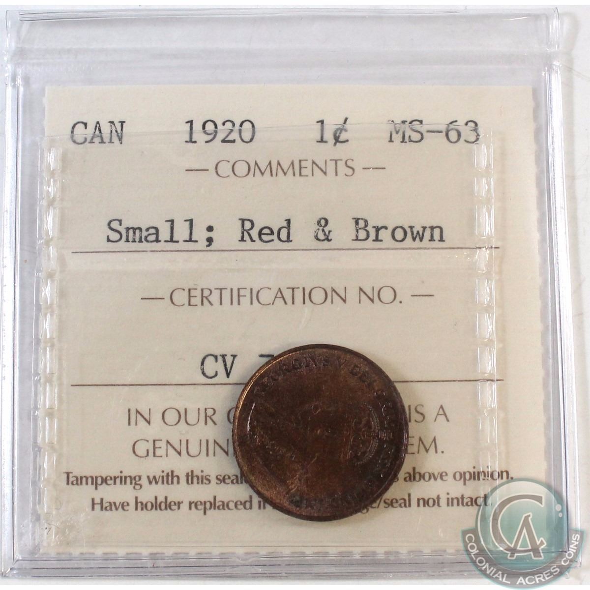 1920 Canada Small 1-cent ICCS Certified MS-63 Red & Brown