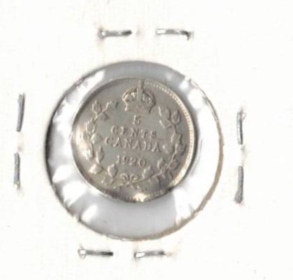 1920 Canadian Five Cent Coin