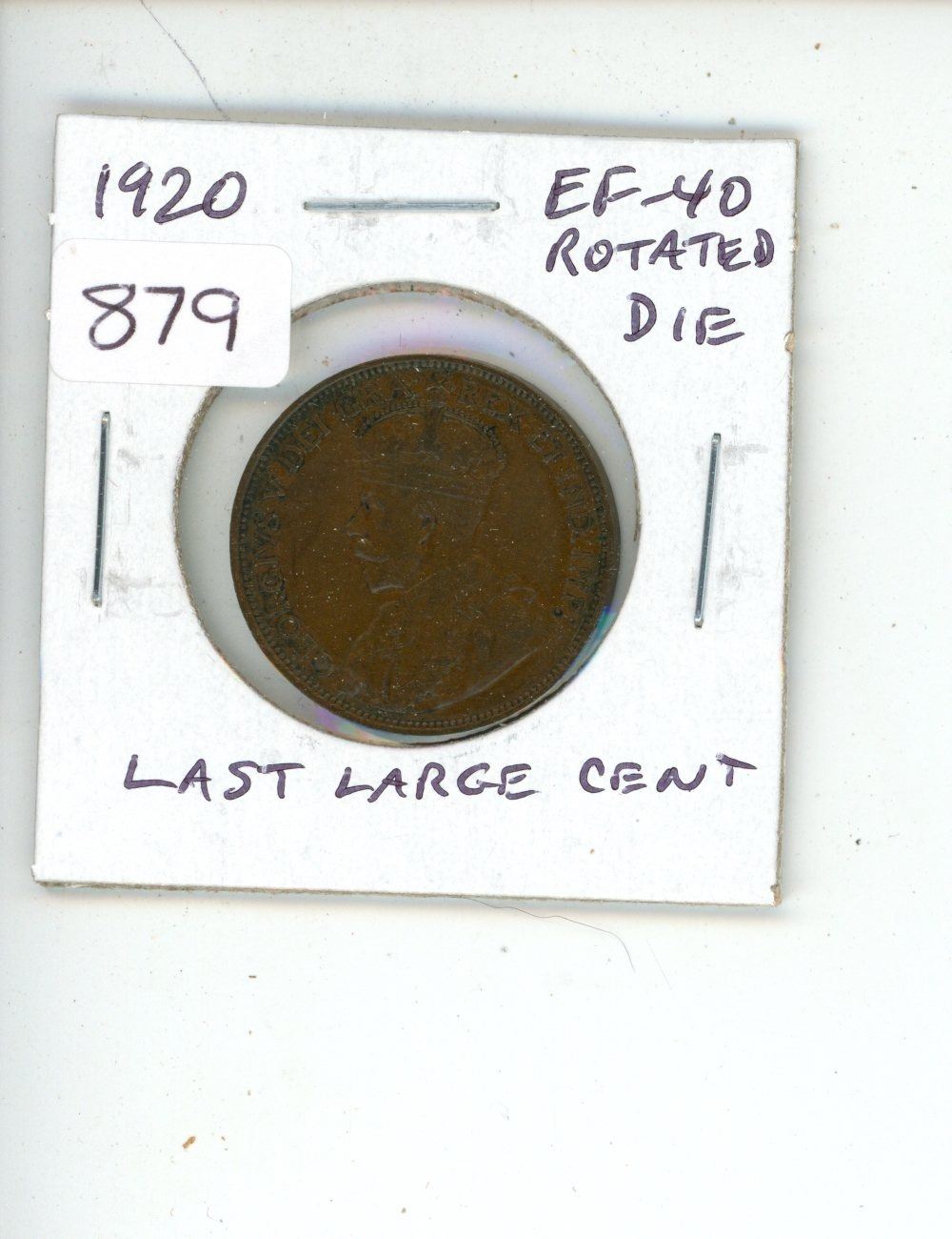 1920 Canadian Large Cent. The last Large Cent issued. EF-40. Rotated Die. Nice.