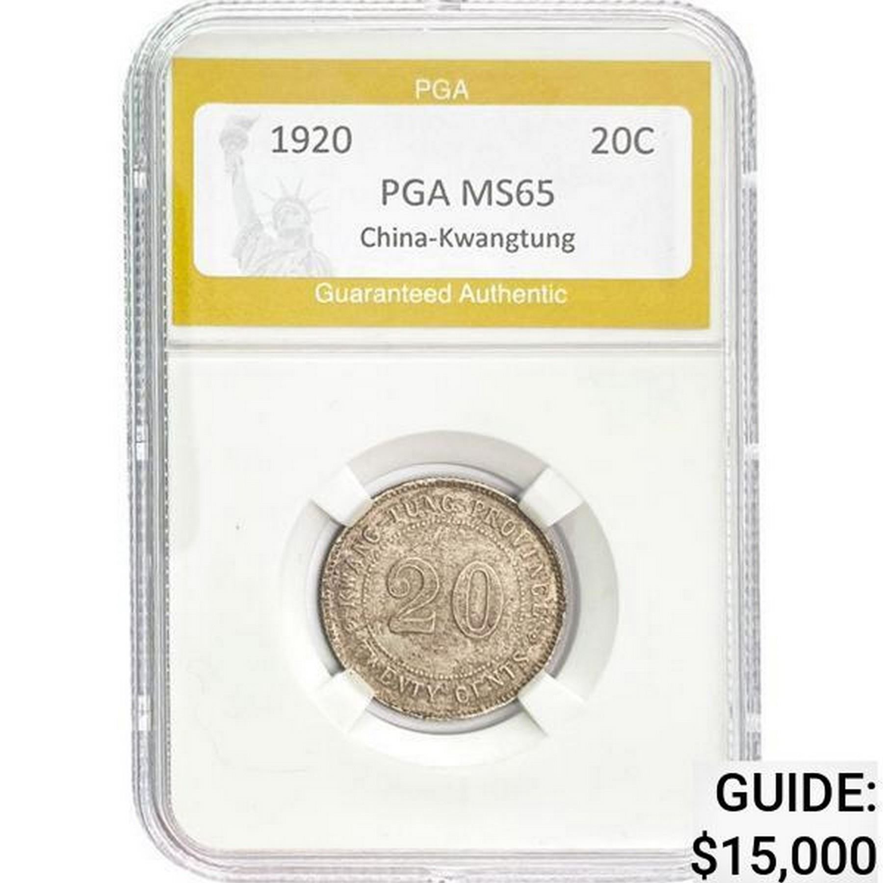 1920 China-Kwangtung 20C PGA MS65 MS65