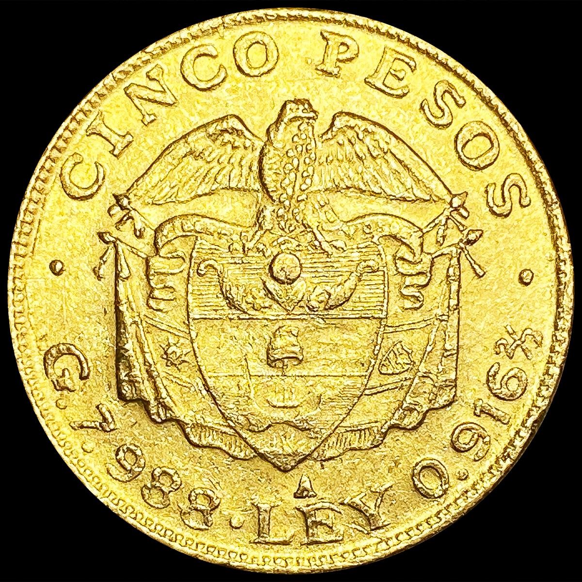 1920 Colombia .2355oz Gold 5 Pesos UNCIRCULATED
